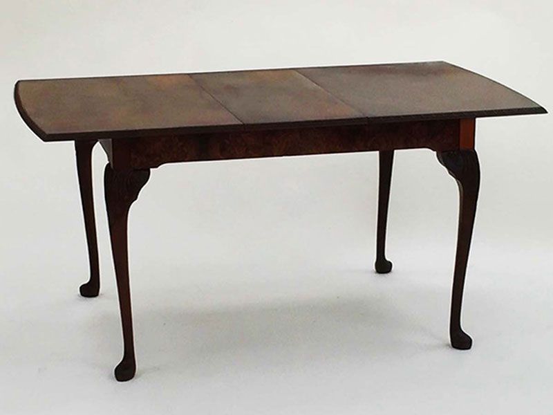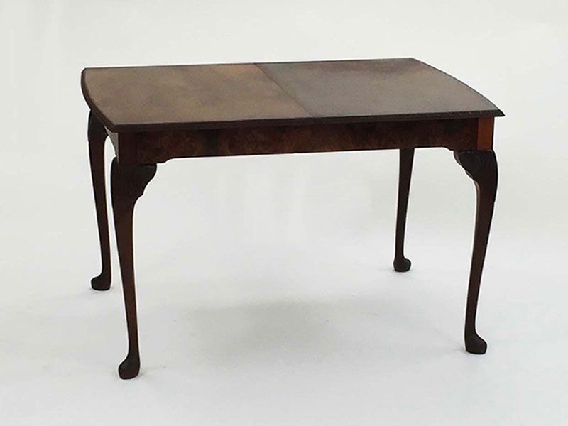 英国製のアンティークダイニングテーブルのご紹介です!こちらのダイニングテーブルは天板が可動式で横幅を1,200oから1,500oへと広げてお使いいただく事ができます。広げる時は天板を左右に引っぱり、中央に中板をはめこみます。使用目的により、幅を調節できるのでとても便利です。テーブルの脚が猫脚になっていたり、各部に彫刻装飾があしらわれているなど高級感たっぷりなこちらのテーブルは、パーティ会場や展示会、モデルルームでの雰囲気作りにお勧めです。