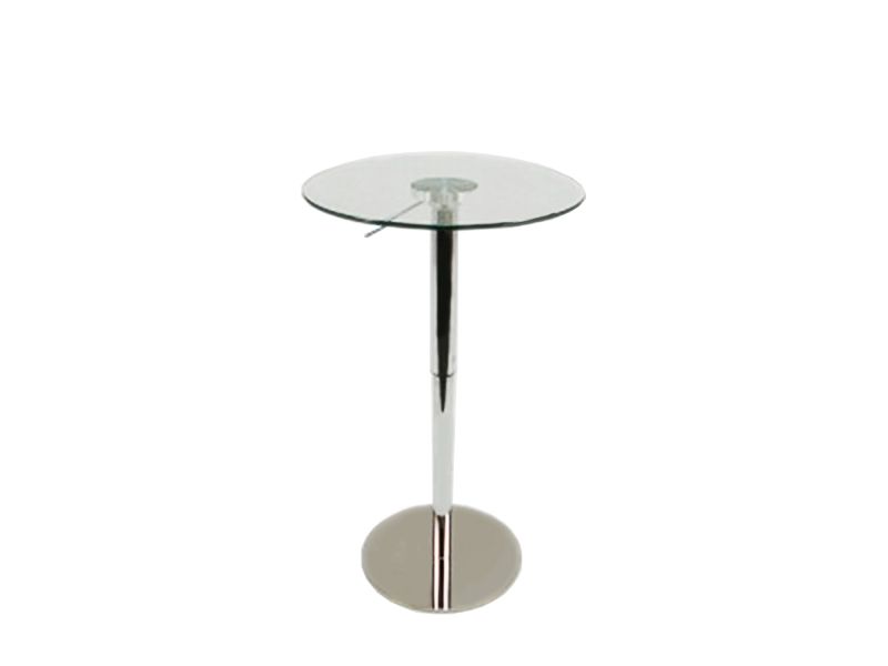 天板が昇降する便利な丸ガラステーブルのご紹介です!高さが700〜1000mmまで調節が可能で、使いたい目的に合わせてお好みのスタイルに変更できます。商談などには低くして、カフェスタイルには高くしてもらうなど使い道は様々です。また天板はガラスですので圧迫感が無く、どんな会場にも、またどんな椅子にでも合わせることができる優れものです。