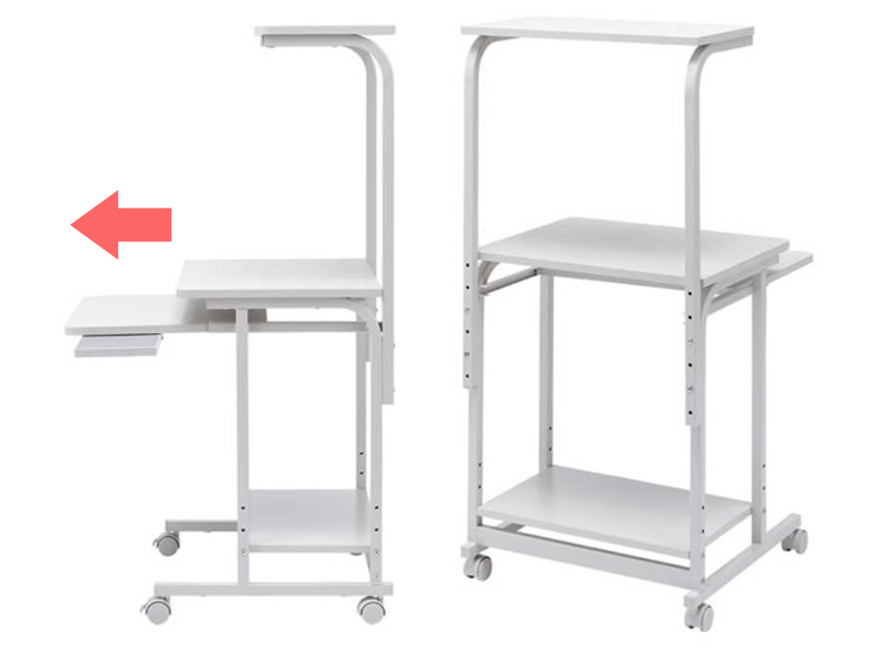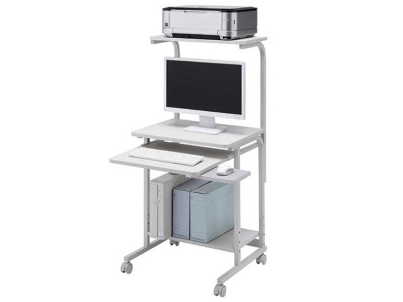 パソコン周辺のOA機器をまとめて収納できる、とても便利なパソコンラックのご紹介です。 使用するのがパソコンだけではなく、プリンターや充電器などもまとめて収納できます。 この商品は、モニター画面の大きさに合わせて高さが調節でき、大変機能的です。 主にオフィスでの作業場や一般家庭でパソコンを設置してお使いいただくことができます。 また、店頭でのパソコンを使ったイベントやモデルルーム、あるいはOA研修会でお使いいただけます。 小規模の勉強会などで急に必要になった場合でも、活躍いたします。