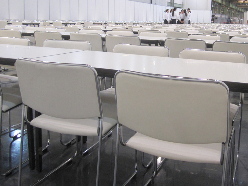 椅子と机が一体化!狭い会場に便利です!
