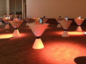 パーティーやセミナー会場で、星粒のように光る電飾テーブルのご紹介です。優しい光を持った、素敵なイベント盛り上げ演出アイテムとしてオススメの一品です。サイズは2種類からお選びいただけますので、来場者の人数やイベントの規模、会場の広さによって最適なほうをお選びください。この他にも弊社はイベント業者ならではの素敵な盛り上げグッズを多数所有しておりますので、いつでもご相談ください!
