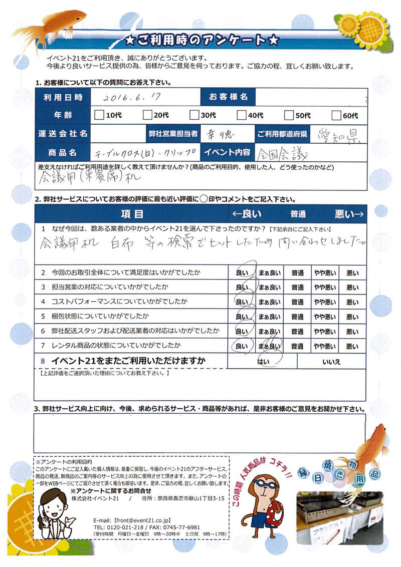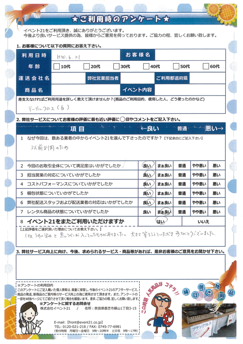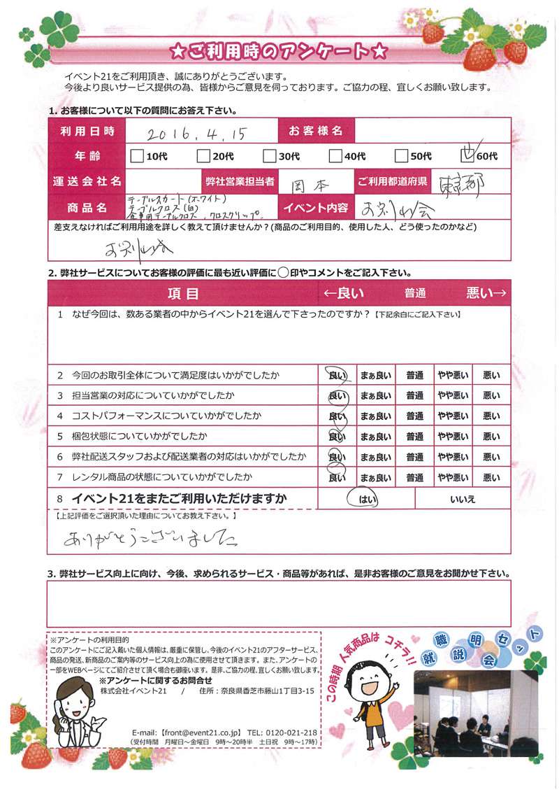 いつも弊社をご利用くださり、ありがとうございます!今後ともイベント21を宜しくお願いします!