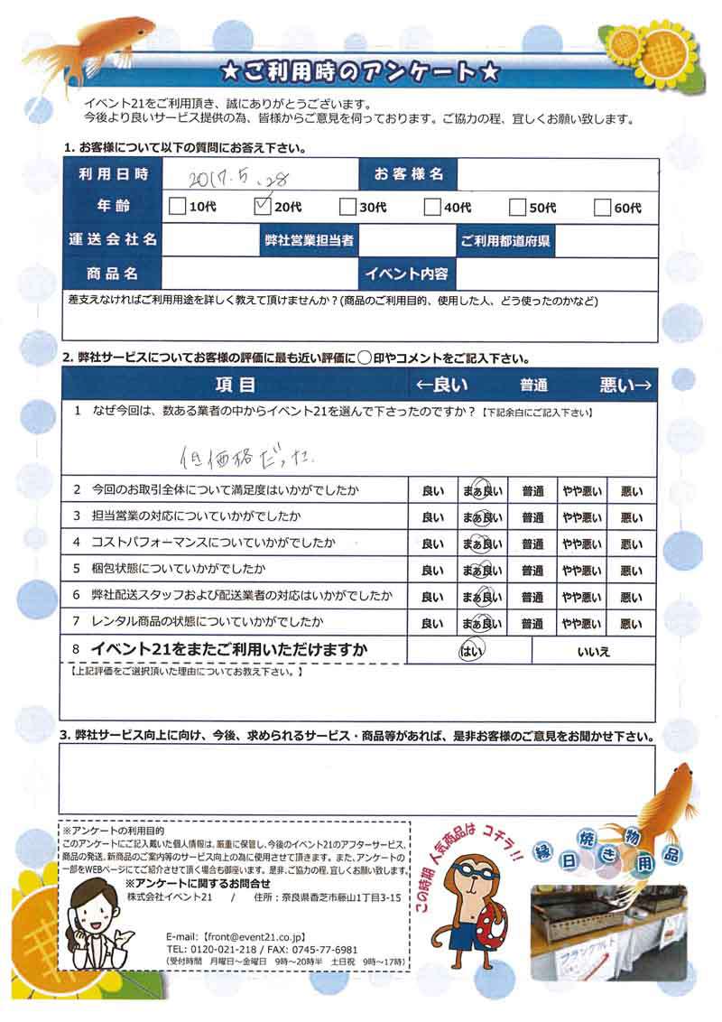 2017年5月にご利用いただいた20代、大阪府のお客様より。