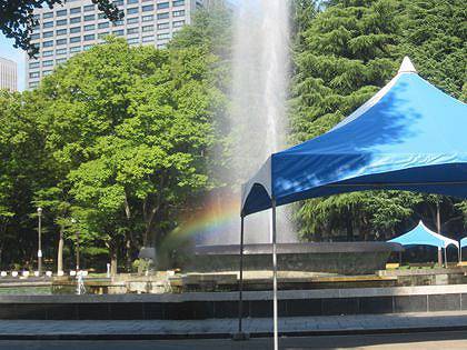 弊社にてレンタルしておりますテントは、通常よりも頑丈なテントで、きっちりと養生を行っておりますが、基本的にイベントを中止するようなレベルの悪天候・強い突風が吹いた場合、テントは仮設タイプの為、構造上耐えられません。
